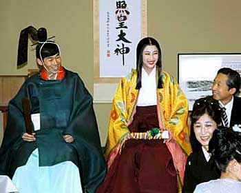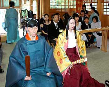 新郎新婦がご神前に玉串を捧げて拝礼します