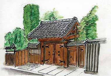 萩原家は平戸の領主で代々旗本杉浦越前守の代官をつとめ、幕末の頃にはこの場所に道場を開いた。今は武家屋敷門と倉が残る。
